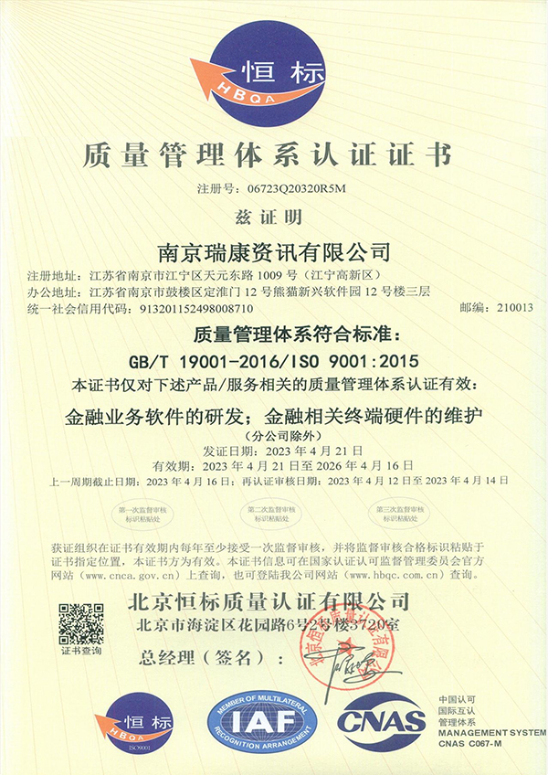 質(zhì)量管理體系認證證書